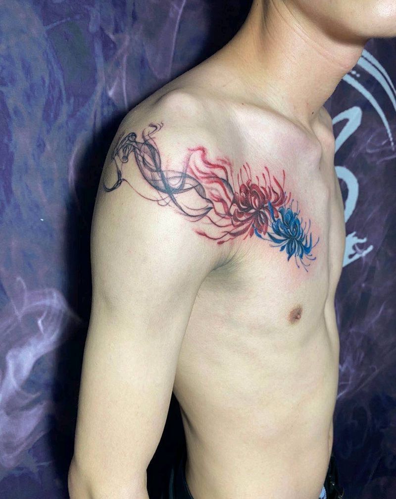 彼岸花设计纹身图片_胸部水彩纹身图案