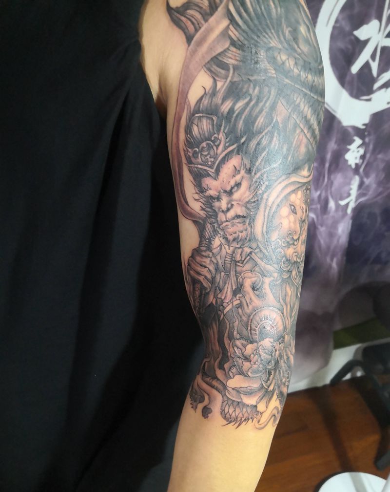 当前位置: 首页 >广东省深圳市纹身店-水刺青纹身图案>猴子遮盖纹身图片_手臂新传统纹身图案