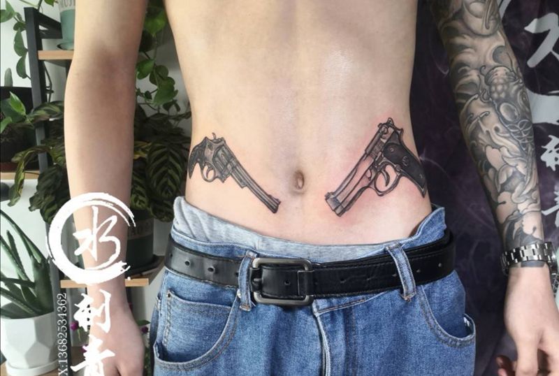 当前位置: 首页 >广东省深圳市纹身店-水刺青纹身图案>双枪纹身图片_腹部欧美写实纹身图案