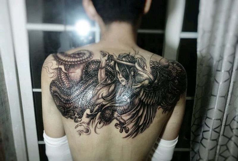 黑灰满背纹身图案