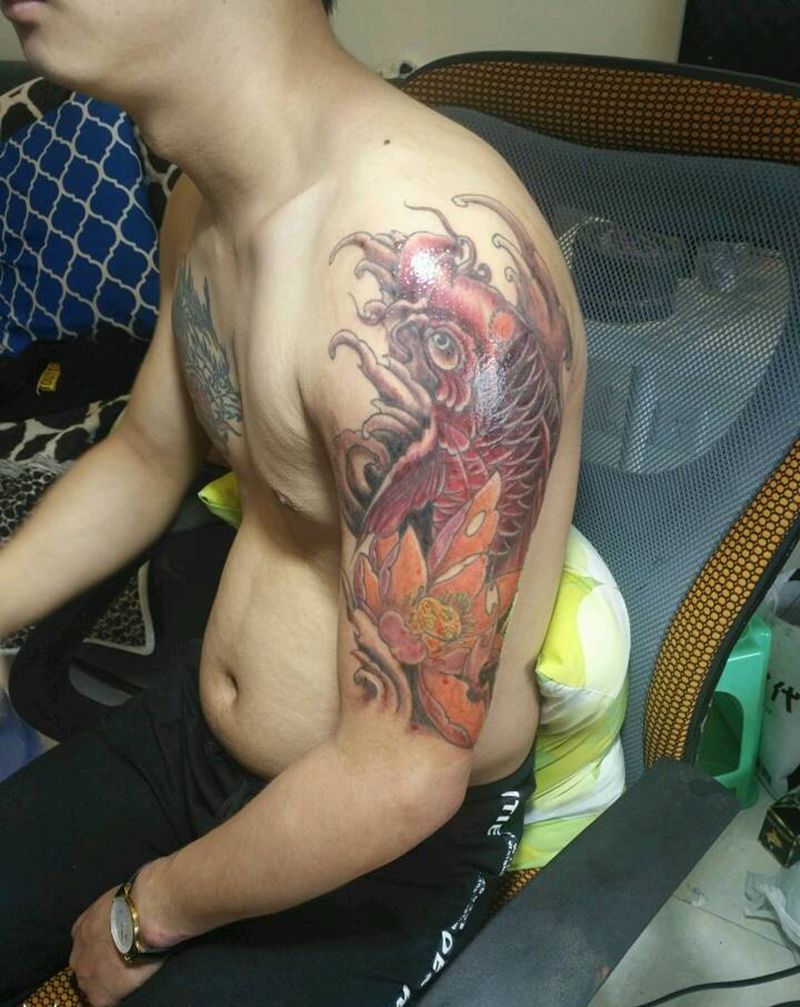 当前位置: 首页 >广东省深圳市纹身店-水刺青纹身图案>鲤鱼彩色纹身图片