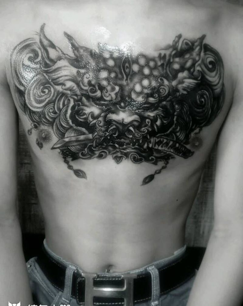 当前位置: 首页 >广东省深圳市纹身店-水刺青纹身图案>狮胸纹身图片_胸部传统动物成品纹身图案