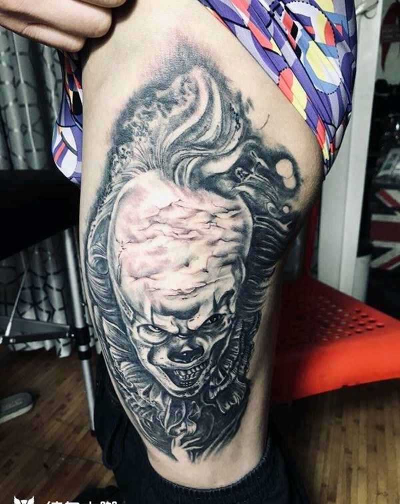当前位置: 首页 >广东省深圳市纹身店-水刺青纹身图案>小丑回复后调整纹身图片_手臂欧美人物成品纹身图案