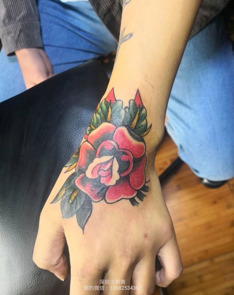 • 手背潮流时尚的玫瑰花眼睛纹身图案