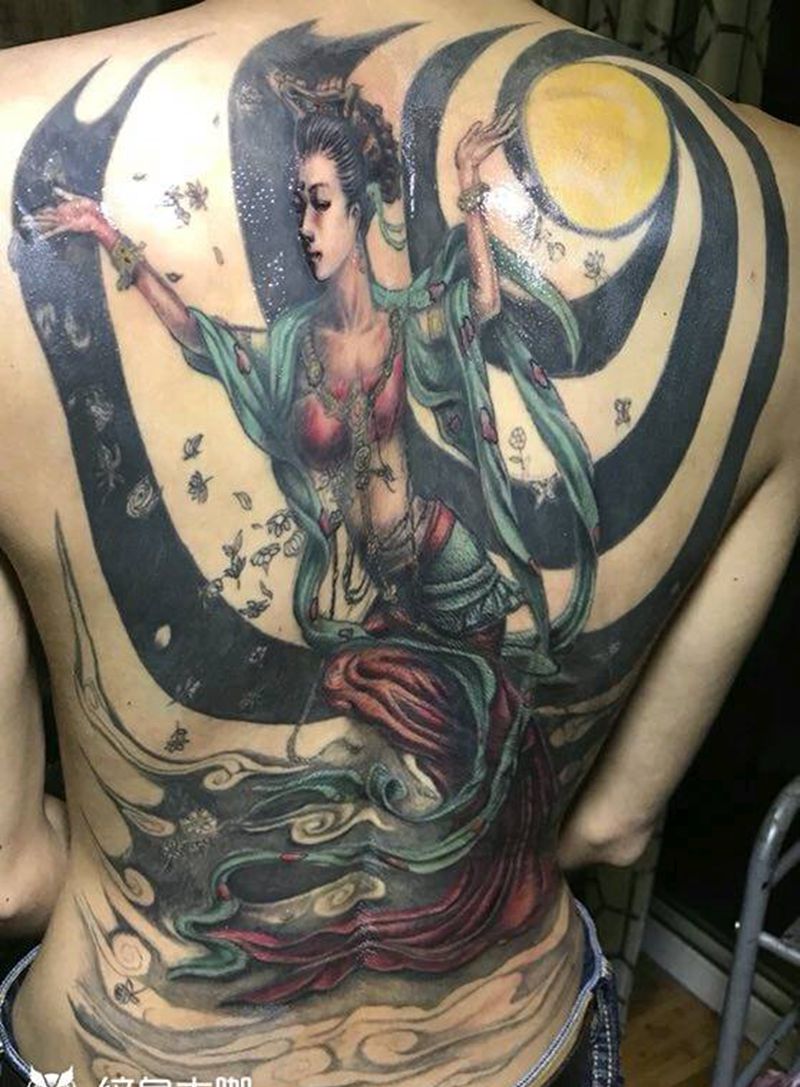 飞天修改纹身图片_背部传统人物纹身图案