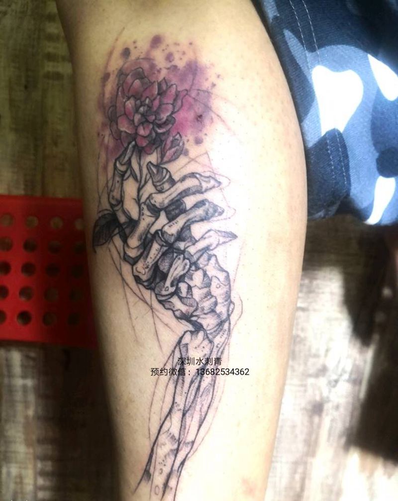 当前位置: 首页 >广东省深圳市纹身店-水刺青纹身图案>骷髅手纹身图片_腿部纹身图案