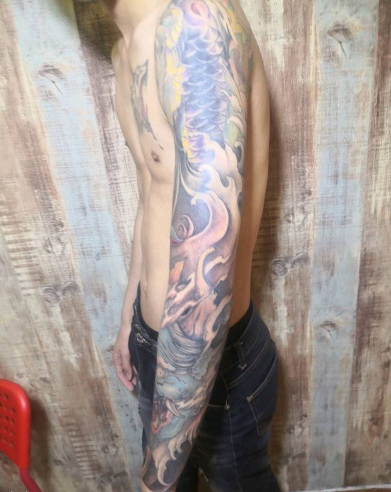 当前位置: 首页 >广东省深圳市纹身店-水刺青纹身图案>般若鲤鱼花臂纹身图片_手臂纹身图案