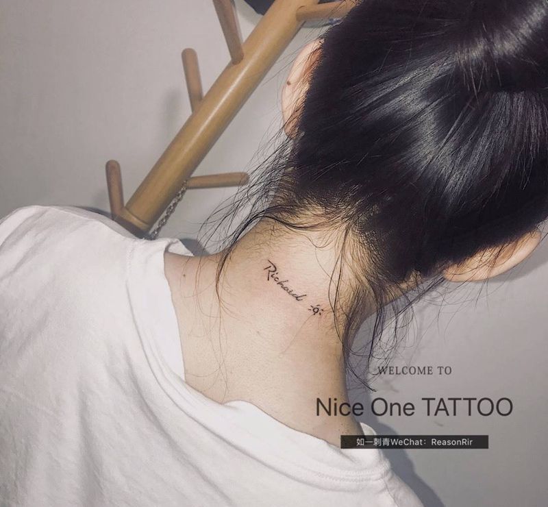 当前位置: 首页 >广东省深圳市纹身店-NiceOne TATTOO纹身图案>情侣英文纹身图片_颈部花体字手写体英文情侣纹身图案