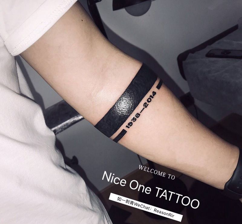 当前位置: 首页 >广东省深圳市纹身店-NiceOne TATTOO纹身图案>纪念臂环纹身图片_手臂花体字几何臂环纹身图案