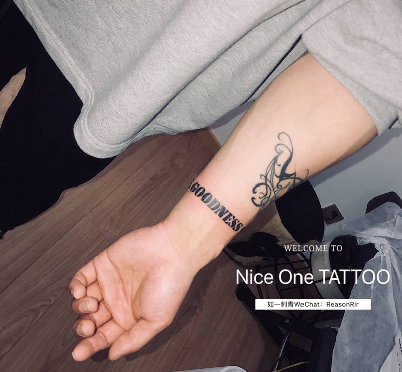 当前位置: 首页 >广东省深圳市纹身店-NiceOne TATTOO纹身图案>真善勇臂环纹身图片_手臂花体字臂环纹身图案