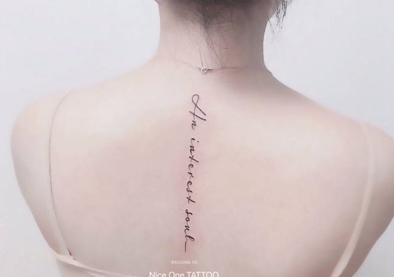 当前位置: 首页 >广东省深圳市纹身店-NiceOne TATTOO纹身图案>脊柱小英文纹身图片_背部花体字小清新英文脊柱纹身图案
