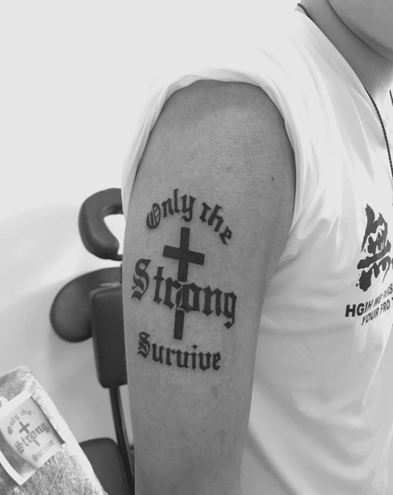 当前位置: 首页 >广东省深圳市纹身店-NiceOne TATTOO纹身图案>大臂英文纹身图片_肩部花体字纹身图案