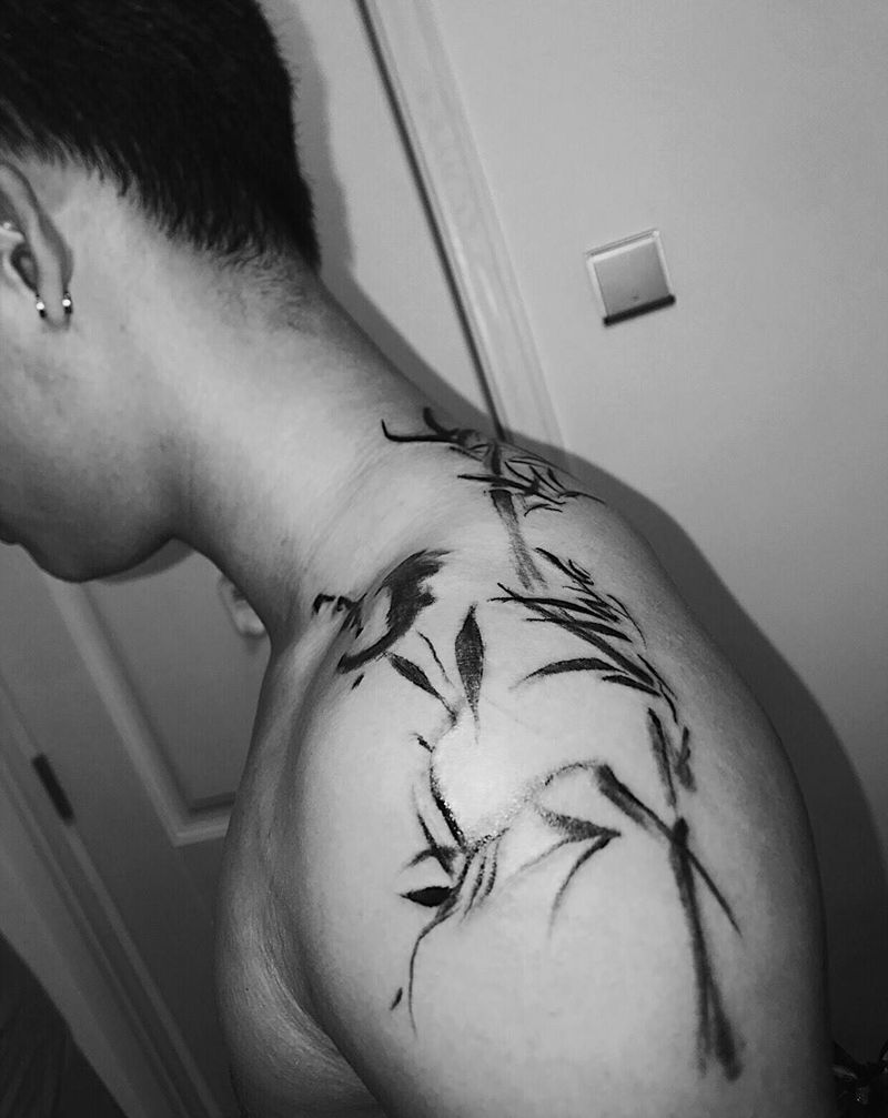 当前位置: 首页 >广东省深圳市纹身店-NiceOne TATTOO纹身图案>墨竹纹身图片_成品肩部传统国画植物原创纹身图案