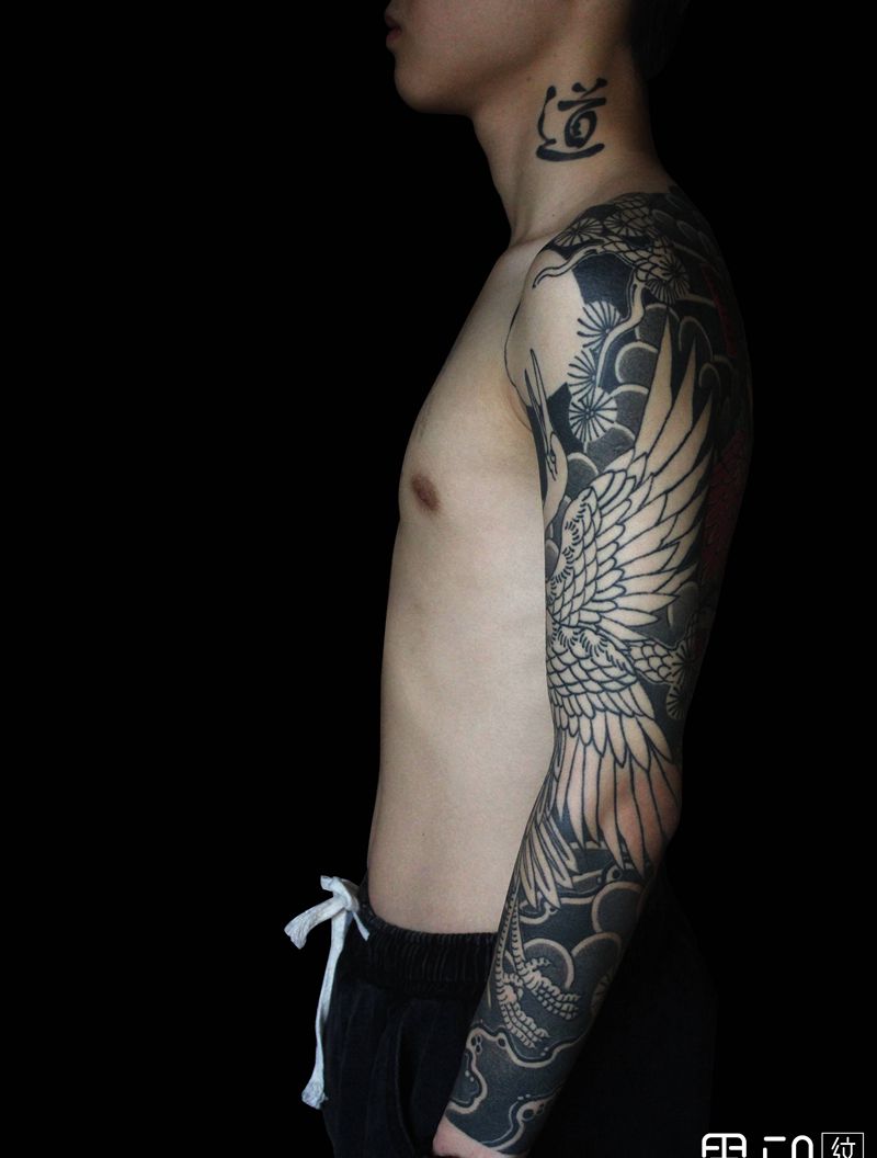 黑灰满背纹身图案