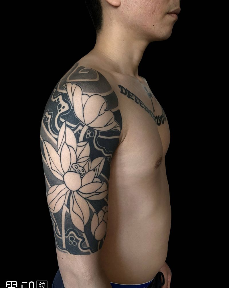 当前位置: 首页 >广东省深圳市纹身店-墨印纹身工作室纹身图案>日式莲花纹身图片_手臂老传统莲花荷花纹身图案