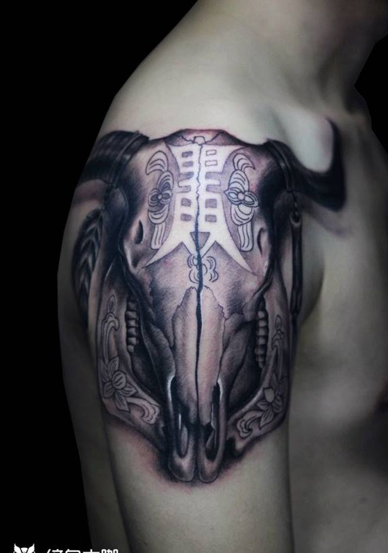 当前位置: 首页 >广东省深圳市纹身店-墨印纹身工作室纹身图案>牛头纹身图片_肩部背部新传统欧美写实牛头牛牛气冲天纹身图案