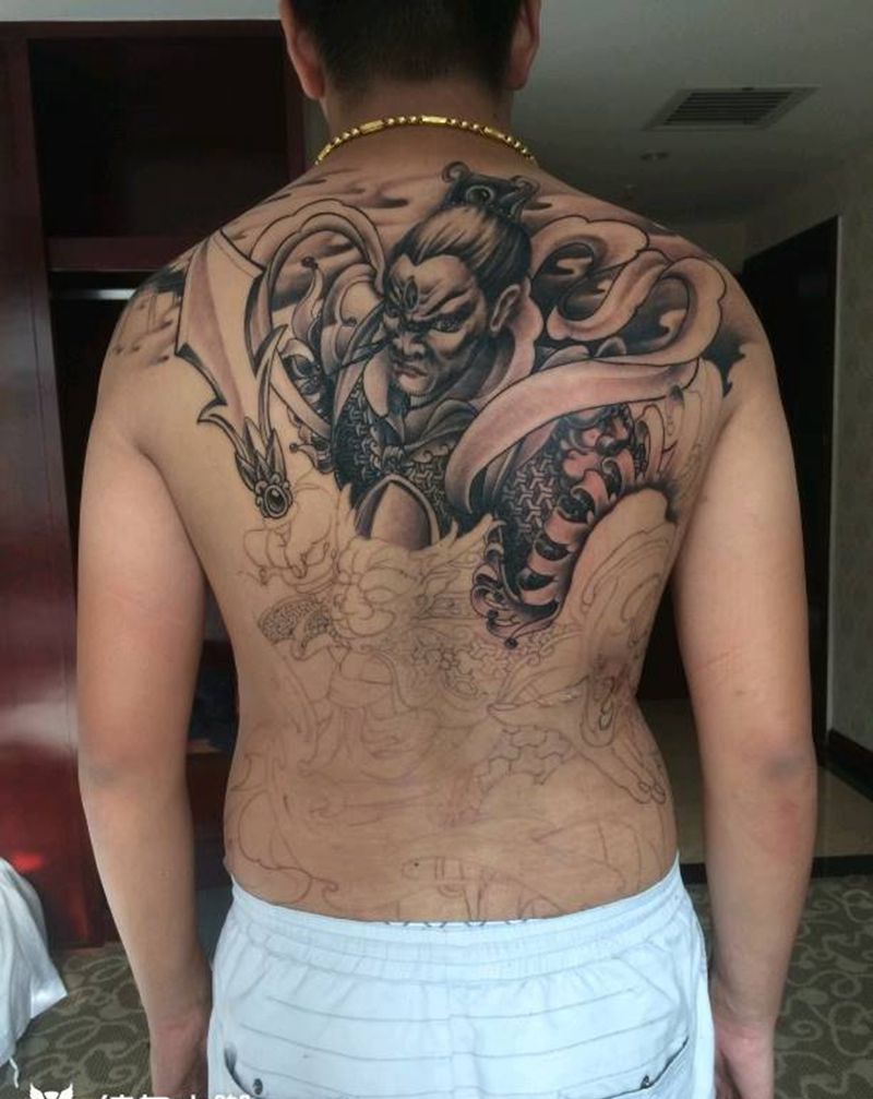 当前位置: 首页 >广东省深圳市纹身店-墨印纹身工作室纹身图案>二郎神纹身图片_背部传统人物鬼神原创成品纹身图案