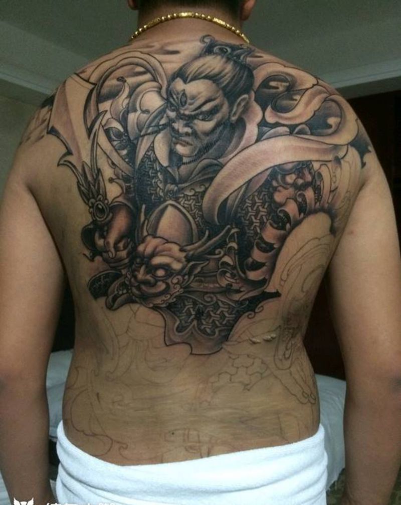 二郎神纹身图片_背部传统人物鬼神原创成品纹身图案