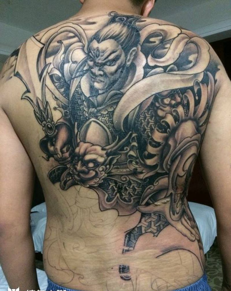 二郎神纹身图片_背部传统人物鬼神原创成品纹身图案
