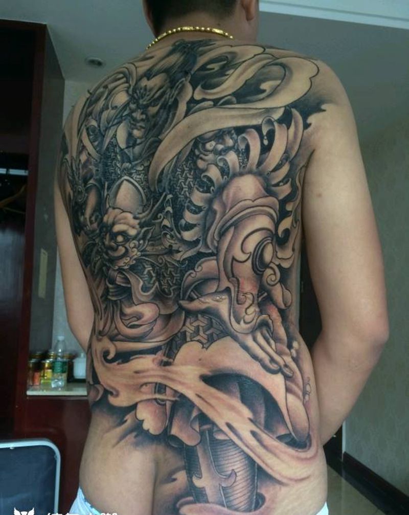 二郎神纹身图片_背部传统人物鬼神原创成品纹身图案