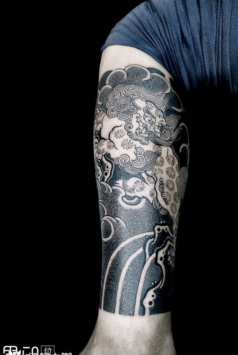 黑灰满背纹身图案
