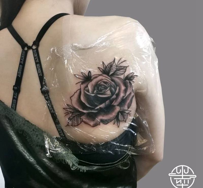遮盖旧图 玫瑰纹身图片_肩部背部欧美写实New School玫瑰遮盖旧图修改纹身图案