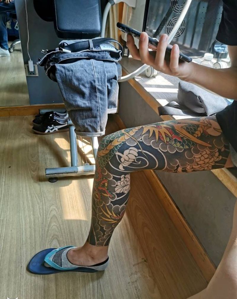 当前位置: 首页 >广东省深圳市纹身店-墨印纹身工作室纹身图案>花腿 细节纹身图片_腿部脚部老传统新传统日式老传统日式花腿龙包腿纹身图案