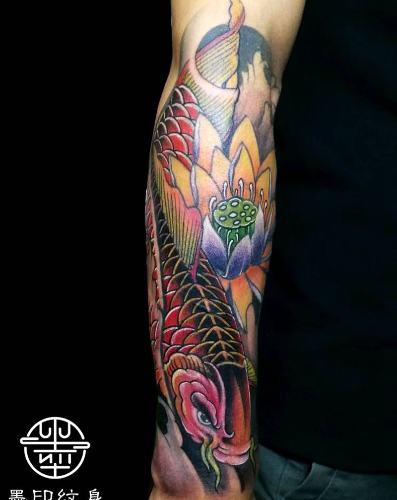 当前位置: 首页 >广东省深圳市纹身店-墨印纹身工作室纹身图案>鲤鱼【修改】纹身图片_手臂新传统鲤鱼修改纹身图案