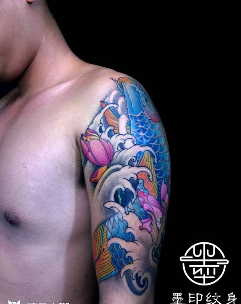 鲤鱼纹身图片_肩部手臂新传统鲤鱼彩色鲤鱼纹身图案