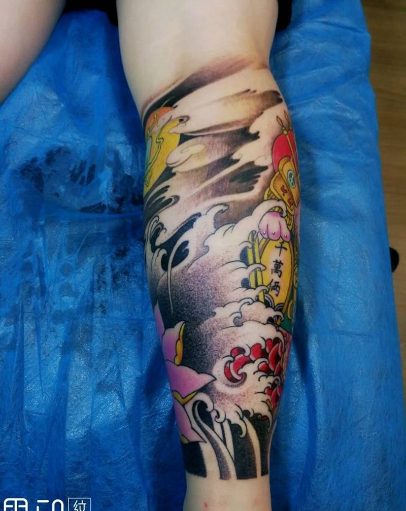 当前位置: 首页 >广东省深圳市纹身店-墨印纹身工作室纹身图案>包腿纹身图片_腿部脚部新传统老传统包小腿鲤鱼招财猫纹身图案