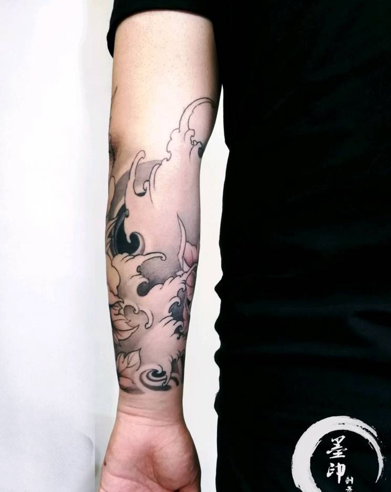 牡丹纹身图片_手臂手部新传统牡丹水浪纹身图案