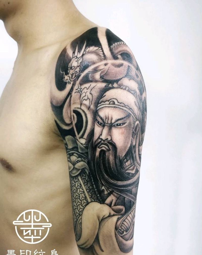 关公纹身图片_肩部手臂新传统关公关羽纹身图案