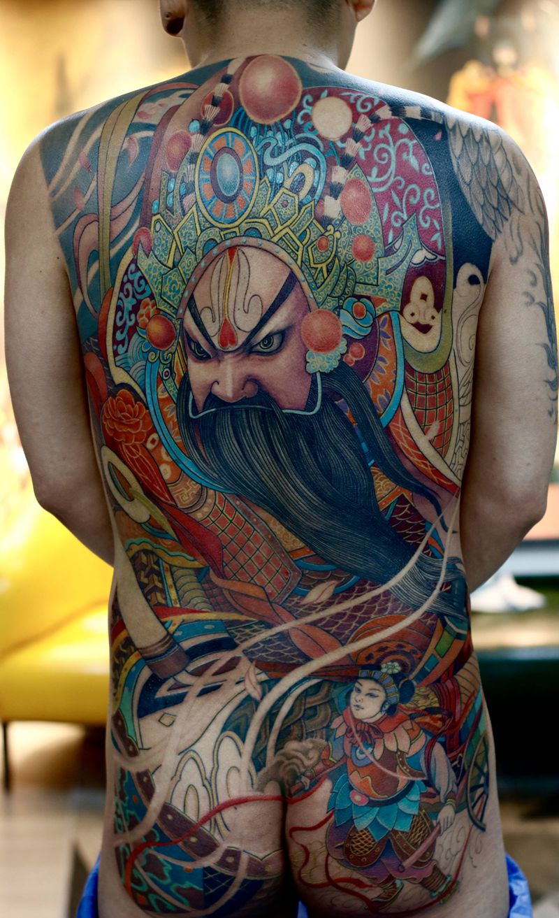 黑灰满背纹身图案