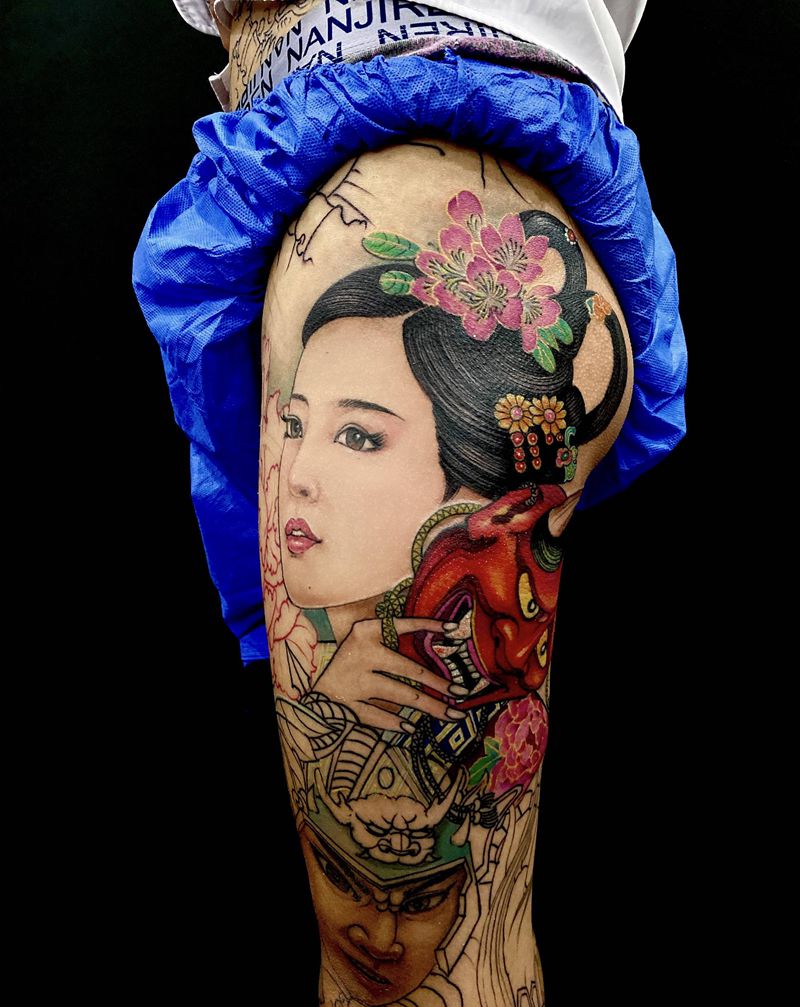 当前位置: 首页 >广东省深圳市纹身店-真一堂刺青纹身图案>局部纹身图片_腿部新传统纹身图案