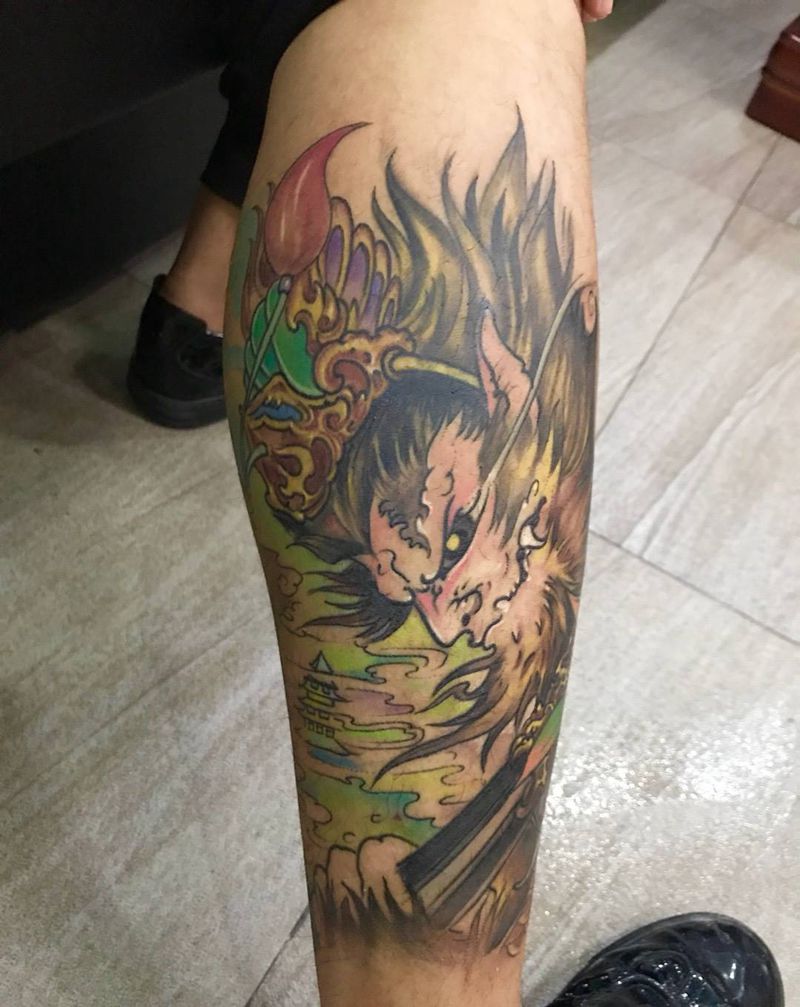 • T网红王老大花腿龙纹身图片_腿部新传统纹身图案