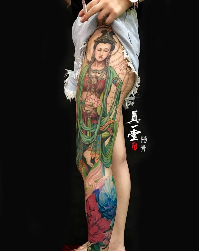 • T网红王老大花腿龙纹身图片_腿部新传统纹身图案