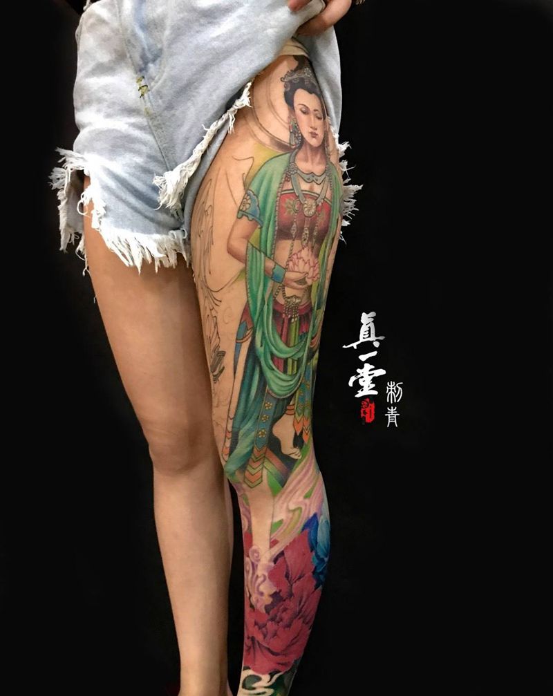 • T网红王老大花腿龙纹身图片_腿部新传统纹身图案