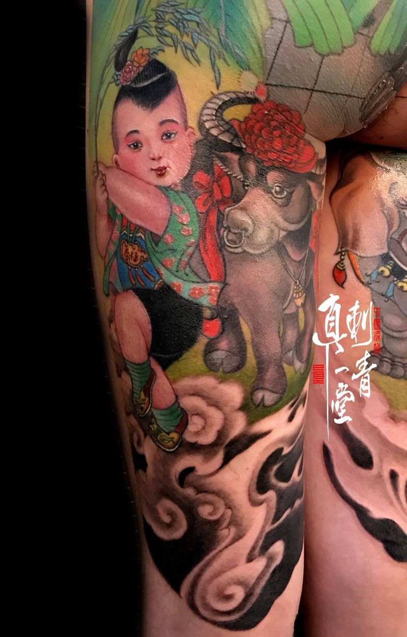 • T网红王老大花腿龙纹身图片_腿部新传统纹身图案