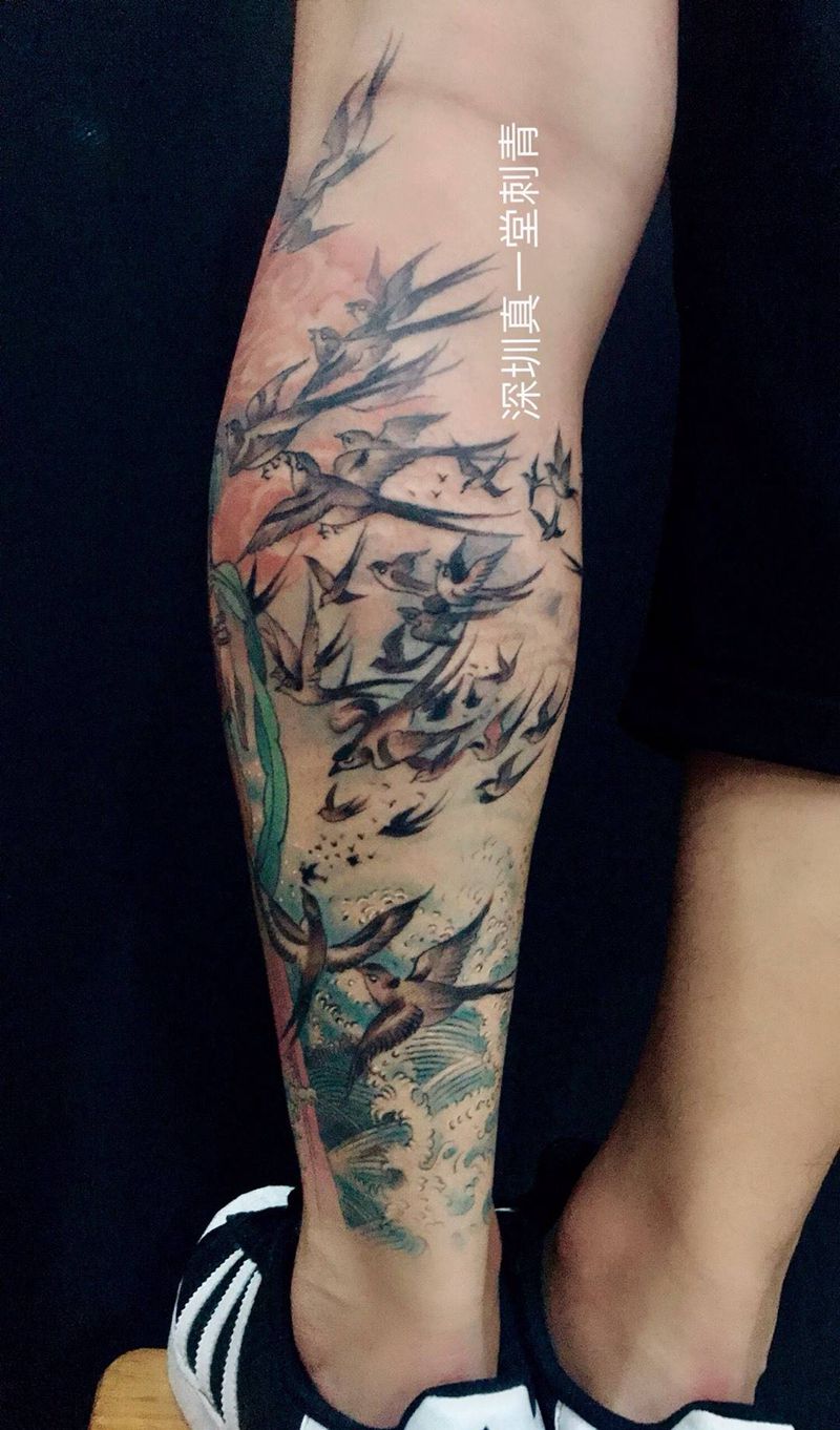 • T网红王老大花腿龙纹身图片_腿部新传统纹身图案