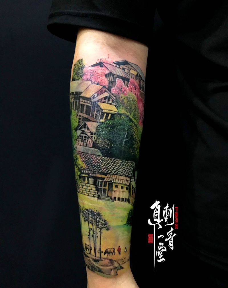 当前位置: 首页 >广东省深圳市纹身店-真一堂刺青纹身图案>遮盖纹身图片_手臂新传统纹身图案