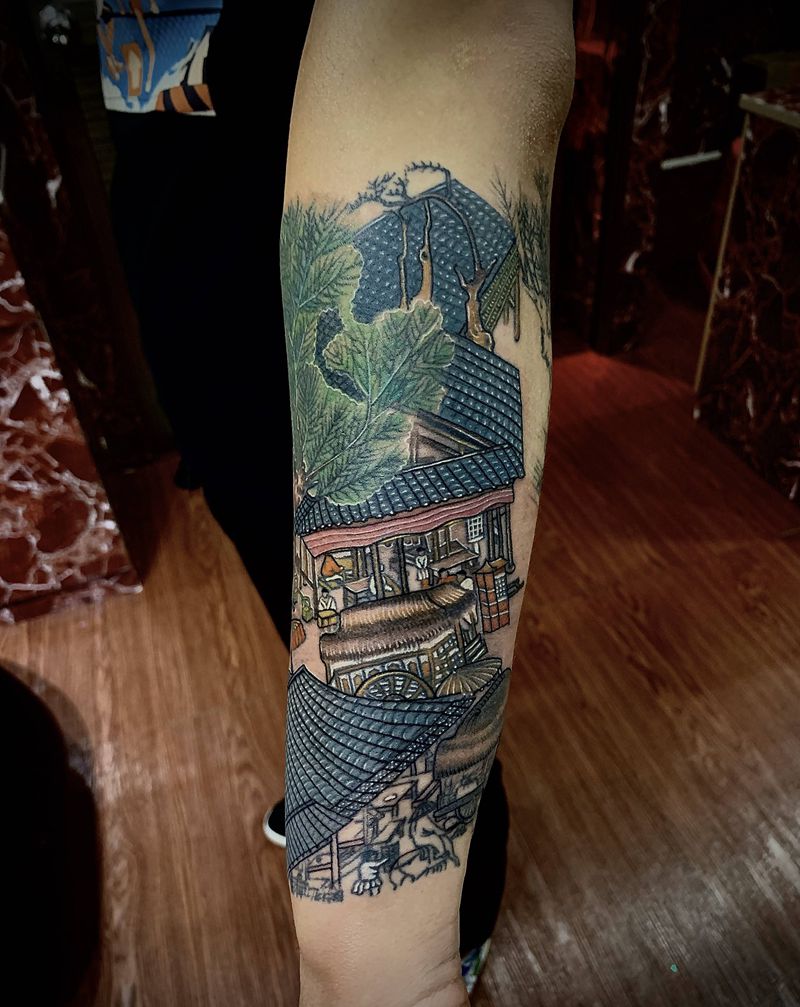 当前位置: 首页 >广东省深圳市纹身店-真一堂刺青纹身图案>清明上河图纹身图片_手臂水墨纹身图案