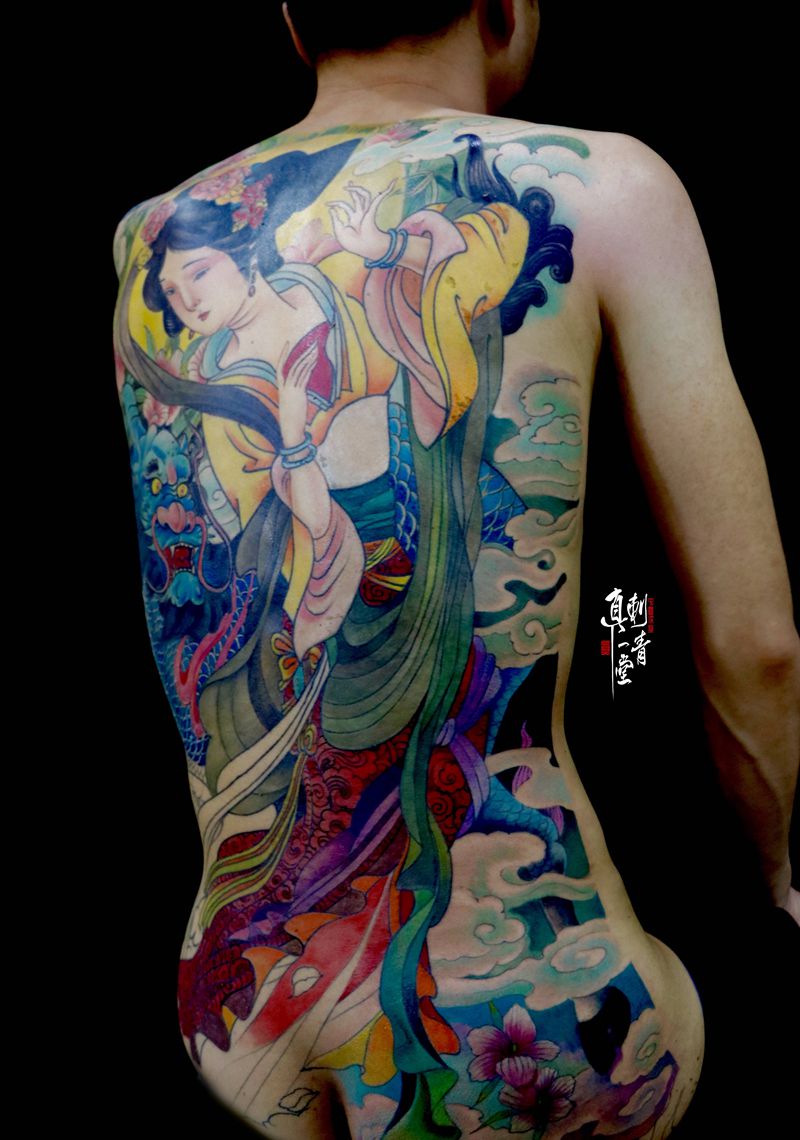 当前位置: 首页 >广东省深圳市纹身店-真一堂刺青纹身图案>人物纹身图片_背部新传统水墨纹身图案