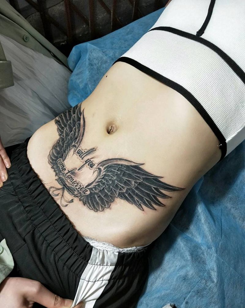 • T关于私处得爱!纹身图片_成品腹部清新字符图腾纹身图案