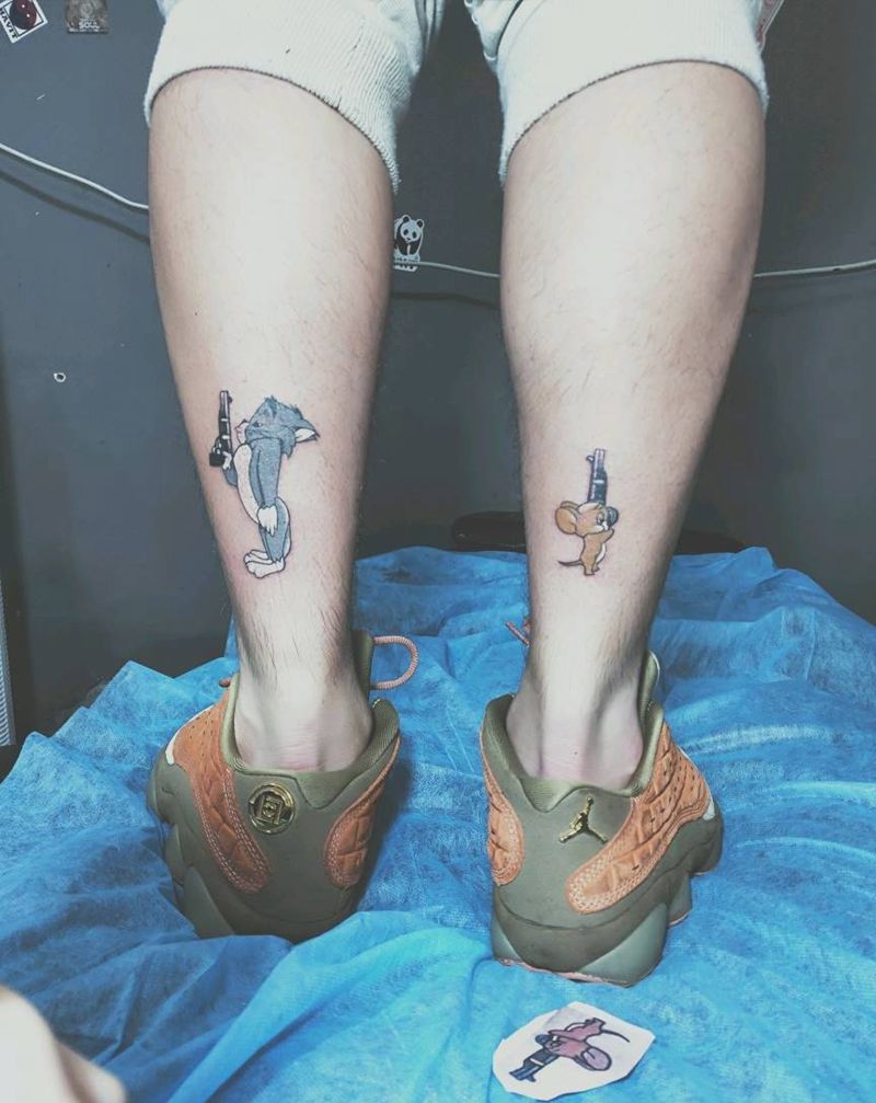 • T包小腿吹火男+阿多福纹身图片_腿部老传统新传统吹火男阿