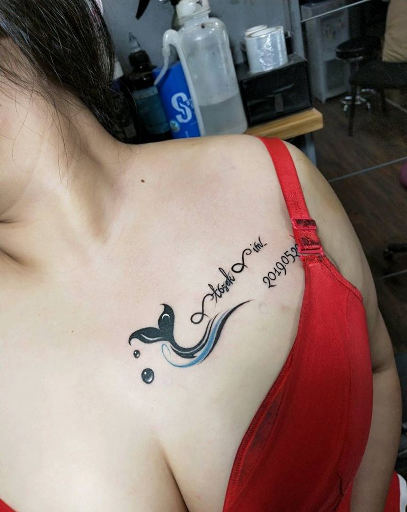 鲸鱼尾巴纹身图片_胸部欧美写实纹身图案