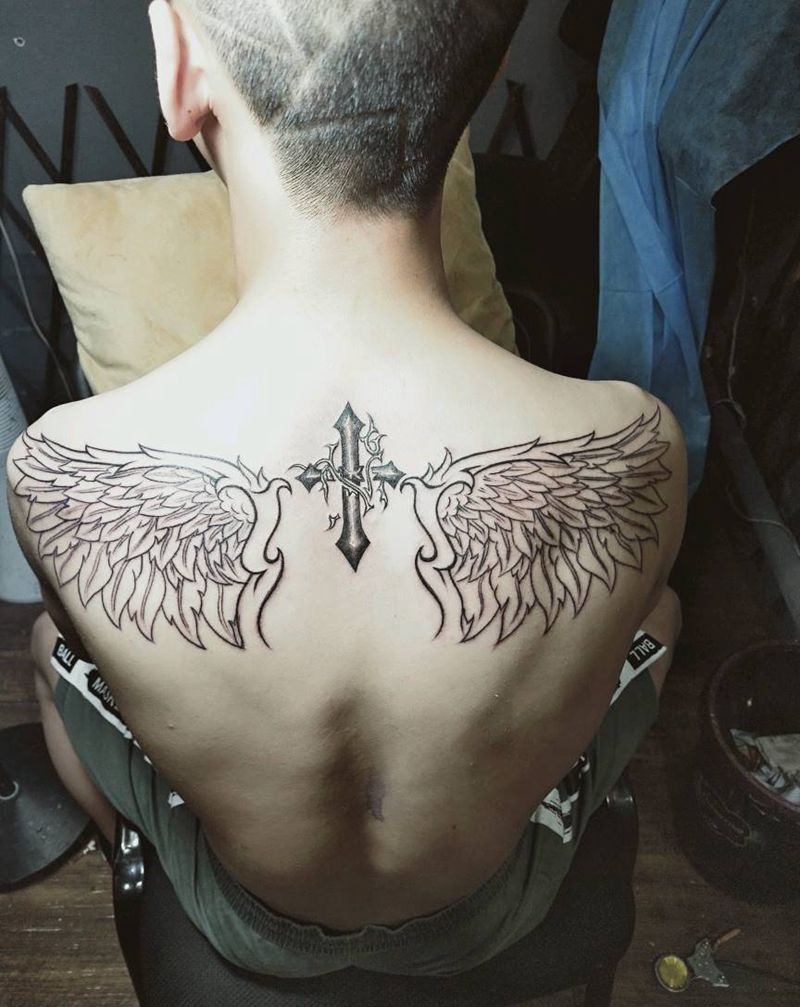 翅膀未完成纹身图片_背部欧美写实纹身图案