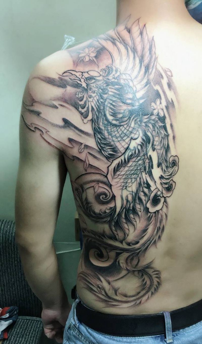 黑灰满背纹身图案