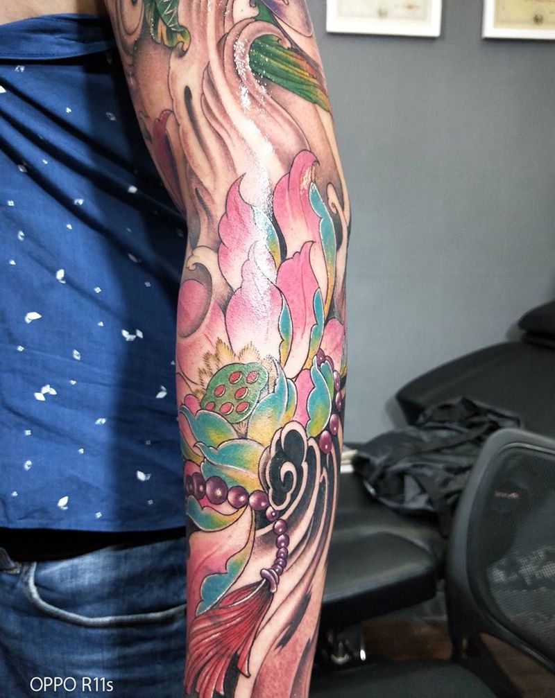 一组15张莲花纹身手