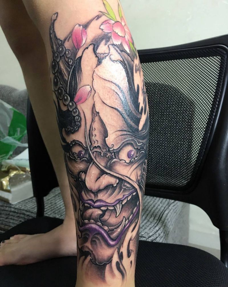 • T网红王老大花腿龙纹身图片_腿部新传统纹身图案