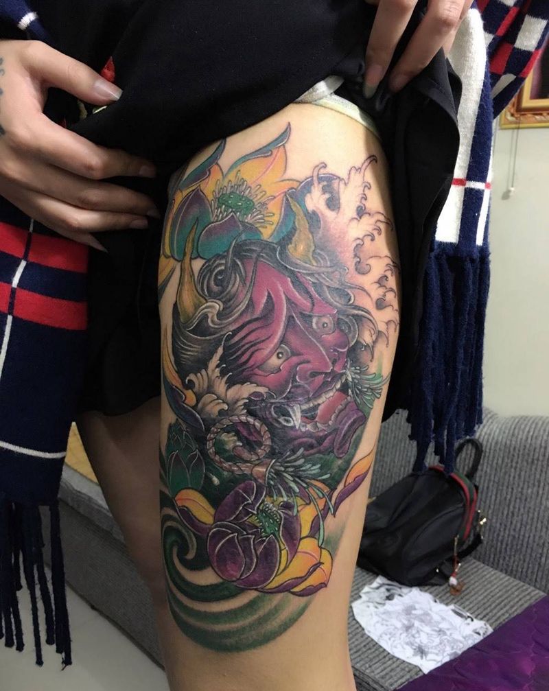 • T网红王老大花腿龙纹身图片_腿部新传统纹身图案